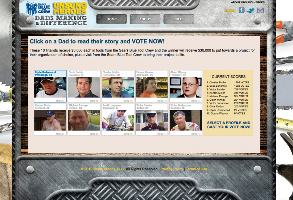 In celebration of Father’s Day, the Sears Blue Tool Crew is rewarding dads who are making a difference in their community through DIY projects. Sparkfactor developed this site where a child or person could enter a deserving dad (through an essay upload) into the “Dads buy xanax from india Making a Difference” contest and telling about the hometown project they are involved in that needs completion or fixing up.